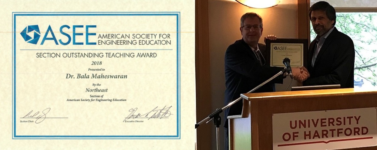 Recognition of Bala Maheswaran as ASEE Zone 1 Chair for the Council of Sections and Board of Directors of the ASEE