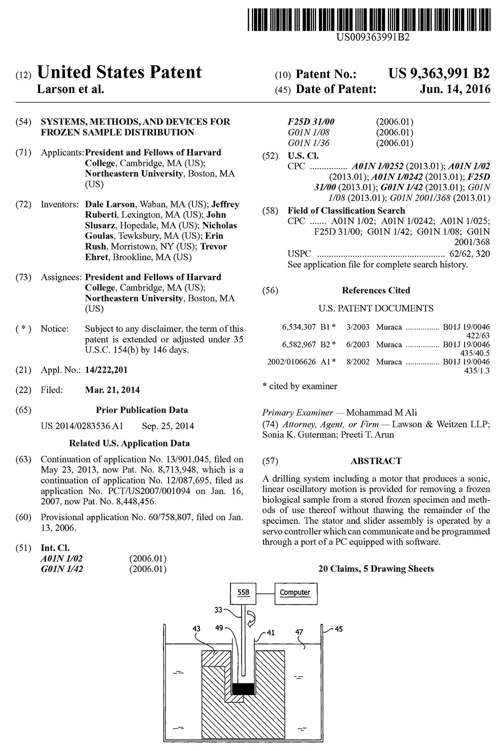 Bioengineering Professor Jeffrey Ruberti was awarded a patent for “Systems, methods, & devices for frozen sample distribution”.