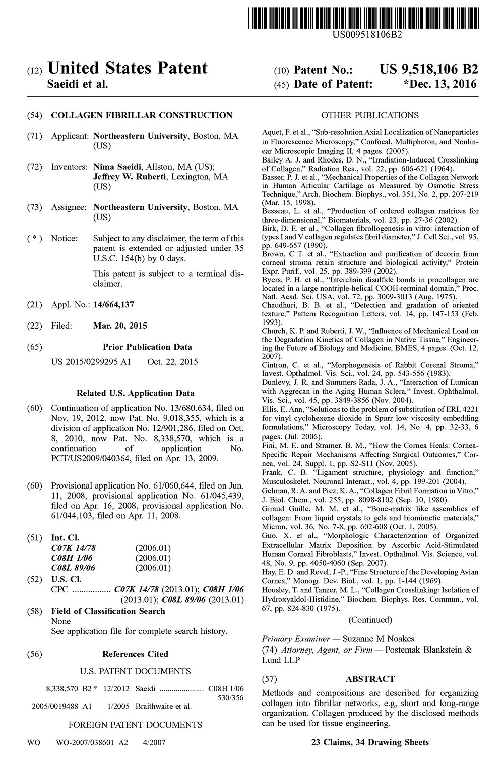 Ruberti Awarded Patent for Collagen Fibrillar Construction