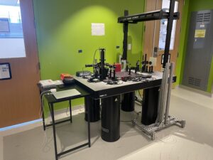 The optics table Zhao was working on in the MAPS Lab.