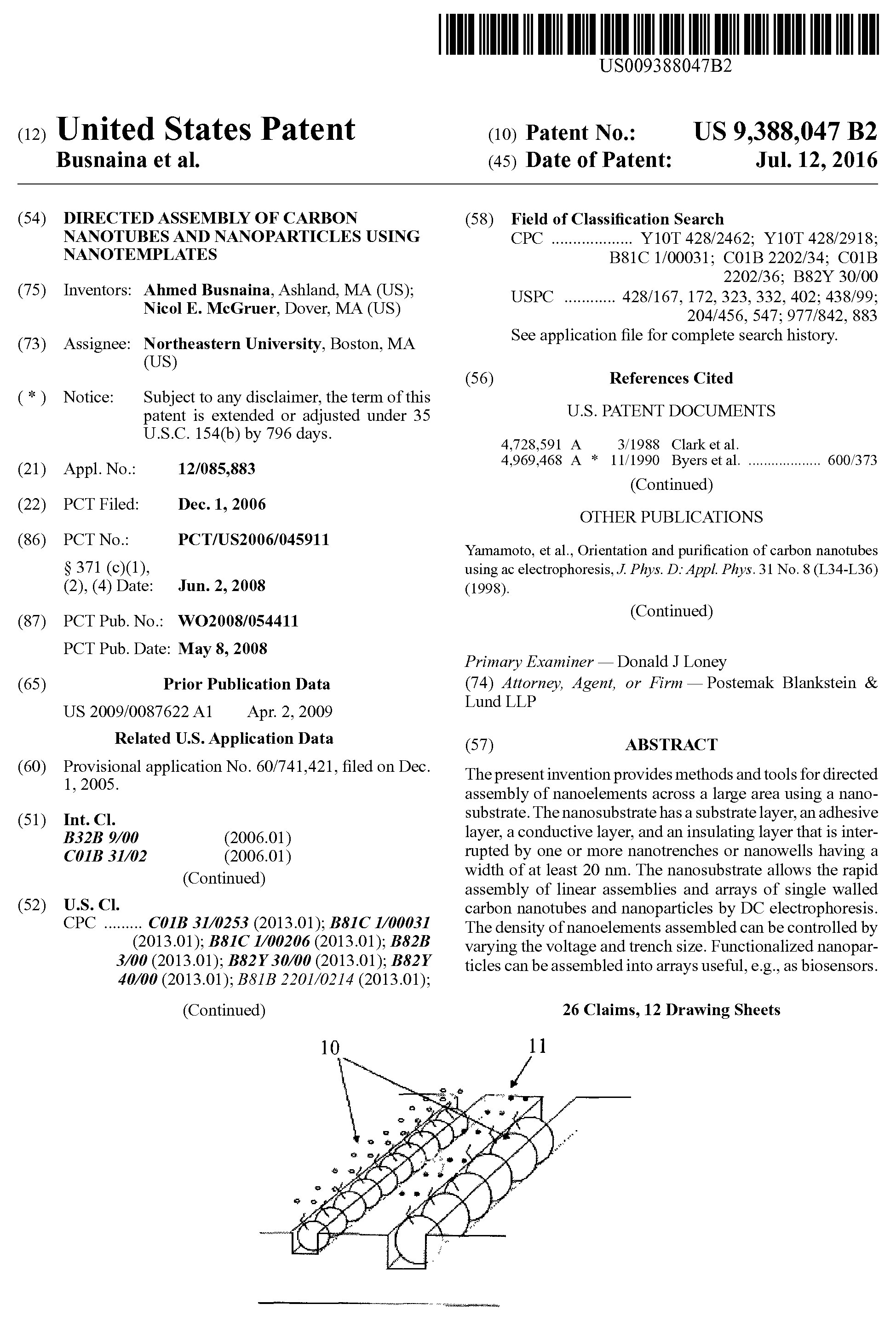 MIE Professor Ahmed Busnaina & ECE Professor Nicol McGruer were awarded a patent for “Directed assembly of carbon nanotubes and nanoparticles using nanotemplates”.